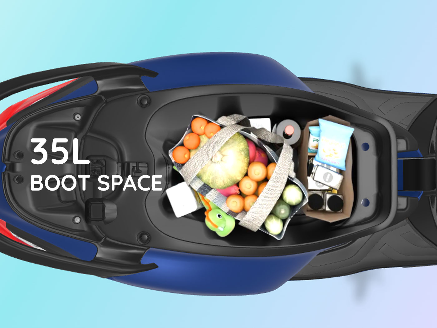 With highest in the industry boot space of 35L of the Chetak 3501, say goodbye to cramped spaces.